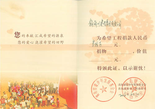 海川集團多年來一直把履行社會義務,回饋社會,報效祖國作為企業(yè)的重要職責,在企業(yè)發(fā)展的同時,不忘社會公益事業(yè),十幾年來已向社會公益事業(yè)捐款累計超過460萬元:先后向青島市教師素質專項基金捐款30萬元,捐建貴州江口縣雙江鎮(zhèn)希望中學30萬元,捐建膠南市黃山鎮(zhèn)希望小學30萬元。并通過基金會捐助惜福鎮(zhèn)后金小學多臺電腦用于教學,2013年4月,又向惜福鎮(zhèn)“為了惜福孩子的明天”大型公益活動捐款30萬元。另外,在汶川地震期間,組織廣大職工開展賑災捐助活動,奉獻愛心,先后向市紅十字會捐款129690元,榮獲“紅十字博愛銀獎”。近年又為惜福鎮(zhèn)教育基金捐款300萬元。2014年至今,連續(xù)三次組織員工積極開展無償獻血公益活動,緩解了島城醫(yī)療機構臨床用血的緊張局面,充分體現(xiàn)了海川集團及廣大員工的社會責任感和無私奉獻精神。
