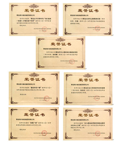 最近,公司從市城鄉(xiāng)建委建管局領(lǐng)回七項(xiàng)榮譽(yù)證書,其中三項(xiàng)“青島市房屋建筑優(yōu)質(zhì)結(jié)構(gòu)工程獎(jiǎng)”,分別是:三分公司施工的青島大好河山葡萄酒莊園項(xiàng)目和青島市中心聾校綜合樓建設(shè)項(xiàng)目;七分公司施工的青島農(nóng)業(yè)大學(xué)新建科技實(shí)驗(yàn)樓工程。四項(xiàng)“青島市建筑業(yè)新技術(shù)應(yīng)用示范工程”分別是:一分公司施工的凱景廣場工程和慧谷時(shí)空1#樓工程;四分公司施工的2014青島世界園藝博覽會園藝文化中心工程;六分公司施工的青島太平洋夢時(shí)代廣場C地塊一標(biāo)段1-3#樓及地下車庫工程。