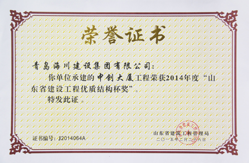 中創(chuàng)大廈優(yōu)質(zhì)結(jié)構(gòu)杯獎(jiǎng)